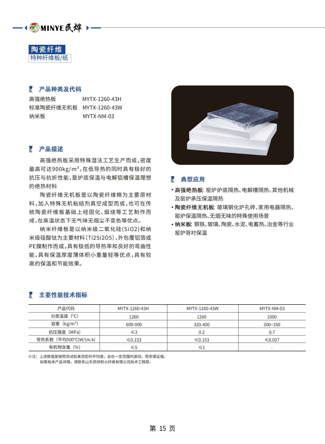 山東民燁耐火纖維有限公司是一家專業從事陶瓷纖維材料的研制開發、生產經營及施工于一體的股份制企業,主要產品有:硅酸鋁纖維棉硅酸鋁纖維模塊硅酸鋁纖維紙硅酸鋁纖維異形件硅酸鋁纖維氈硅酸鋁纖維繩硅酸鋁纖維板硅酸鋁纖維毯等,產品暢銷全國,深受用戶好評。了解最新產品報價可以聯系我們網站 http://www.rolfperrin.com/上電話,我們會第一時間跟您聯系。